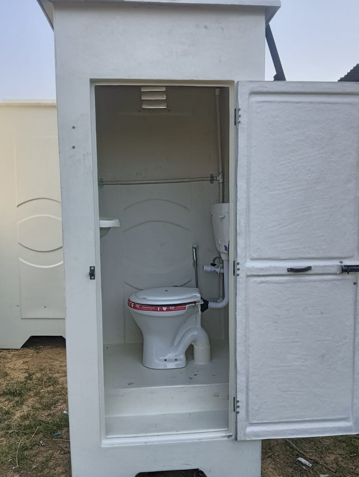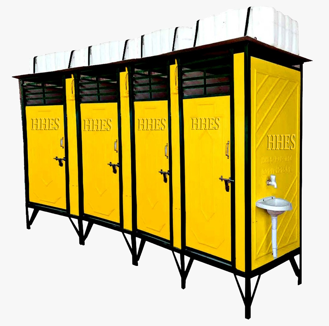 Portable toilet cabins come in various sizes and configurations, but they typically include a toilet, a handwashing sink or hand sanitizer dispenser, and a ventilation system. Some may also have additional features such as mirrors, lighting, and shelves for toiletries.